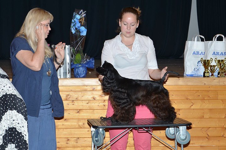 Word cocker show sa konala spoločne americký kokerpšanieli s anglickými. Mali osobitné rozhodkyne ale v záverečných sútažiach sa spojili. Bola to naša druhá výstava na ktorej sme sa opäť stretli s pani Olinkou aj s Kettynkynim bráškom Kendym. Kedže som už vedela ako to všetko bude prebiehať a Ketty podstatne zmúdrela (5 mesiacov) pracovať s ňou bolo omnoho jednoduhšie. Najprv som ju chcela prenechať pani Olinke (našej chovateľke) ale kedže Ketty sa nechcelo s ňou spolupracovať prišla som na radu ja, dnes som tomu rada bol to krásny deň, plný úspechov pre meno OLIDO.